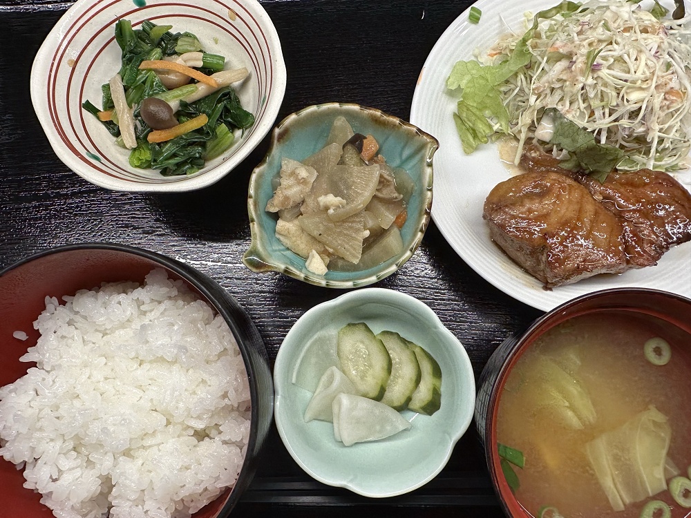 まぐろの尾の身の照り焼き 2026年3月19日 最終更新日時 : 2026年3月19日 mw2pc6arhg 本日の献立 ご飯・味噌汁・まぐろの尾の身の照り焼き・サラダ・きゅうりと大根の漬物・ほうれん草ときのこのお浸し・おばんざい Follow me! FacebookXHatenaPocketCopy